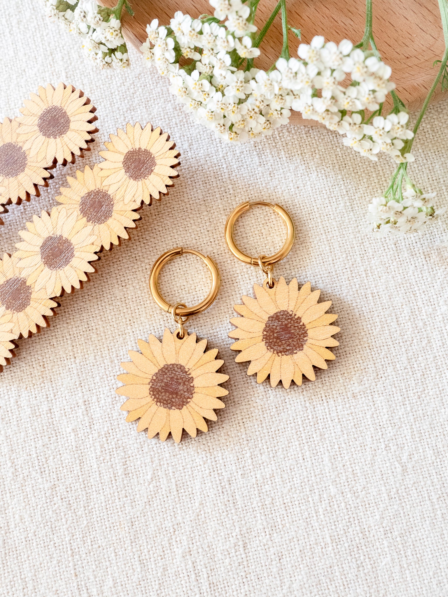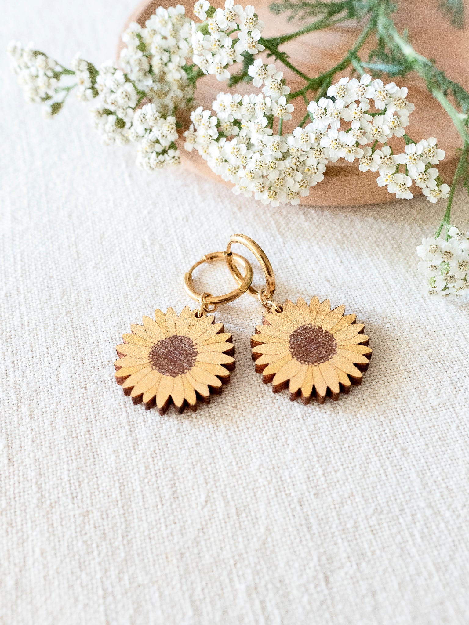 Kotimaisesta koivuvanerista valmistetut korvakorut ovat kevyet käyttää. Korvakoruissa on 16 mm huggie-rengas ja niiden kokonaispituus on n. 4 cm.