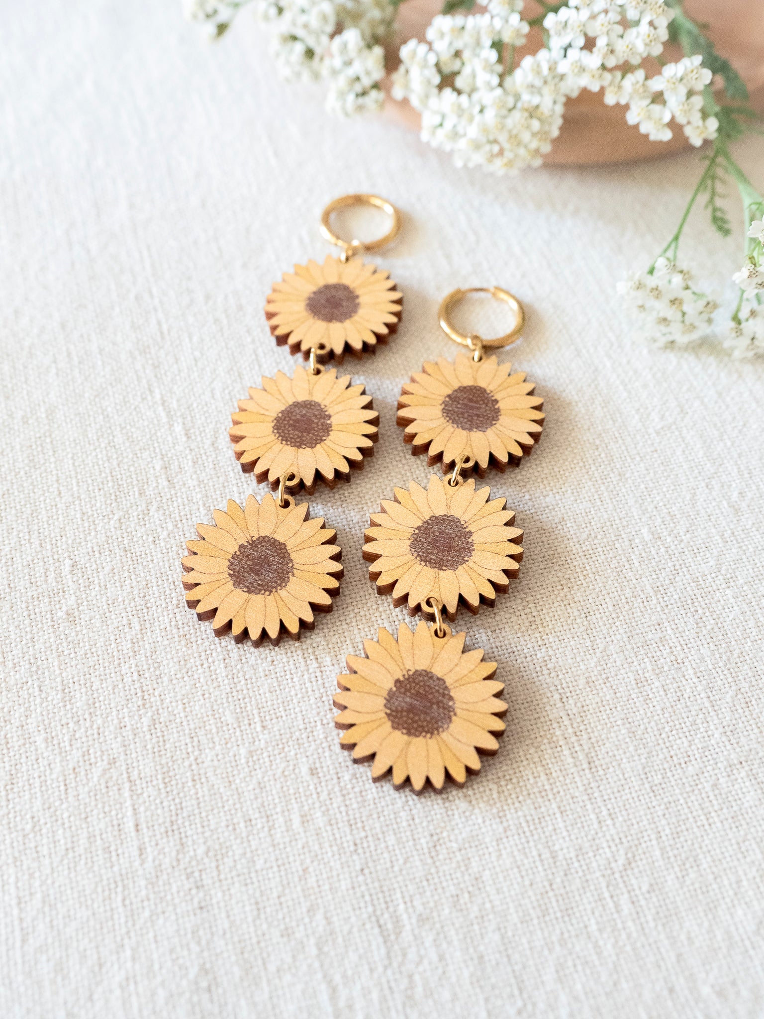 3-osaiset korvakorut ovat näyttävät, mutta kevyet käyttää. Korvakoruissa on 16 mm huggie-rengas ja niiden kokonaispituus on n. 10 cm.